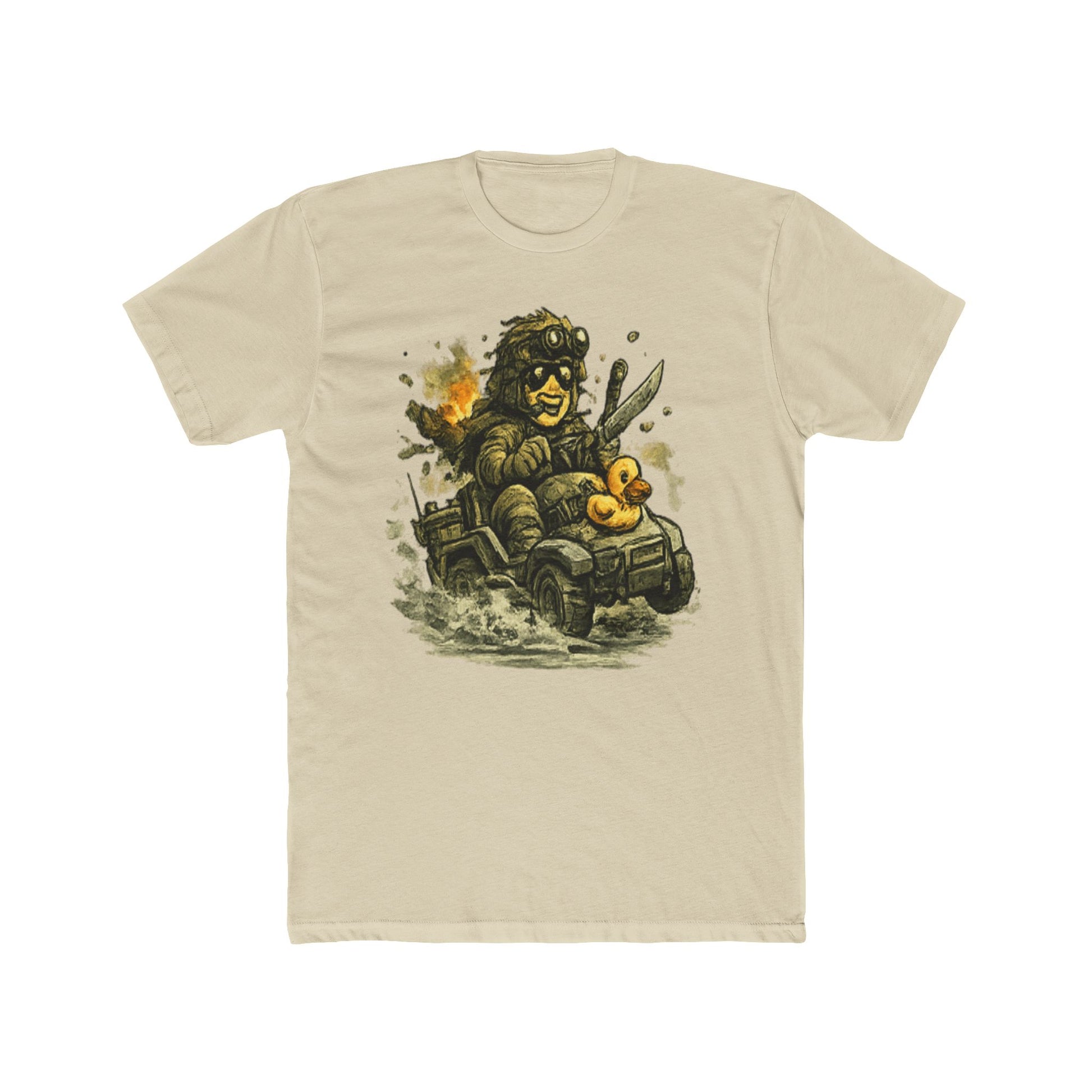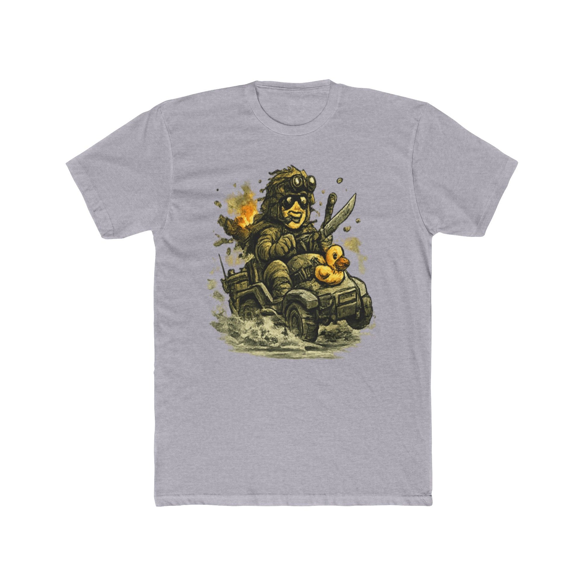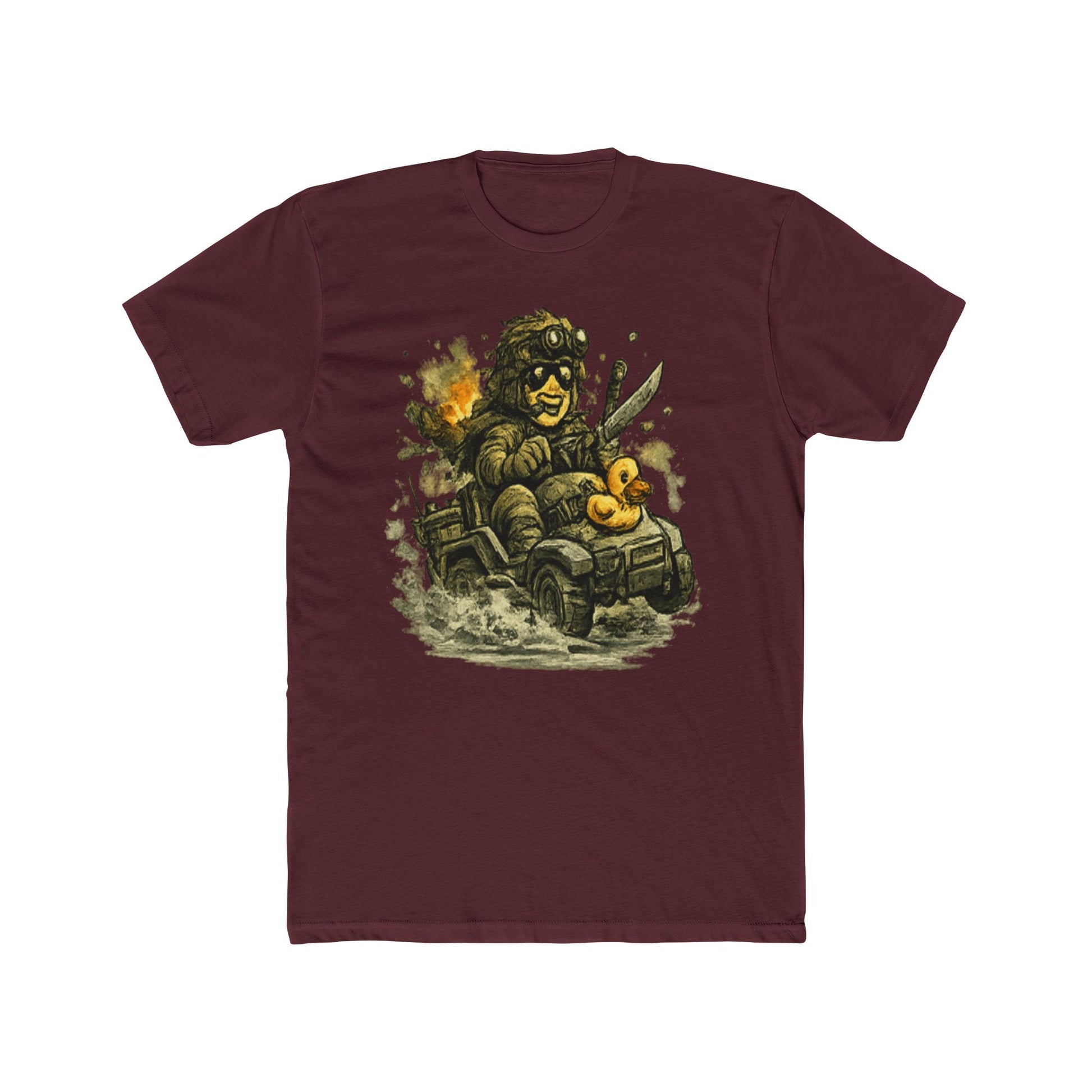 This image features a pixelated, retro-style illustration of a large toad or frog character wearing sunglasses and wielding a knife or blade weapon. The amphibian creature displays an aggressive, menacing expression with a prominent mouth and bulging features typical of classic video game art. Beside the main character sit two small yellow rubber ducks, creating an incongruous and humorous contrast to the violent theme. The overall aesthetic draws from 8-bit or 16-bit era video game graphics, with blocky pixels and simplified geometric forms defining the character design. Dust clouds and explosive effects surround the scene, suggesting action and combat within a fantasy or game-like setting.